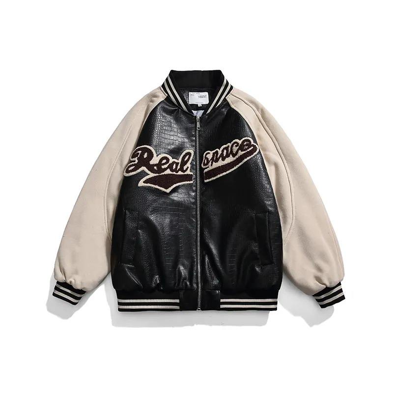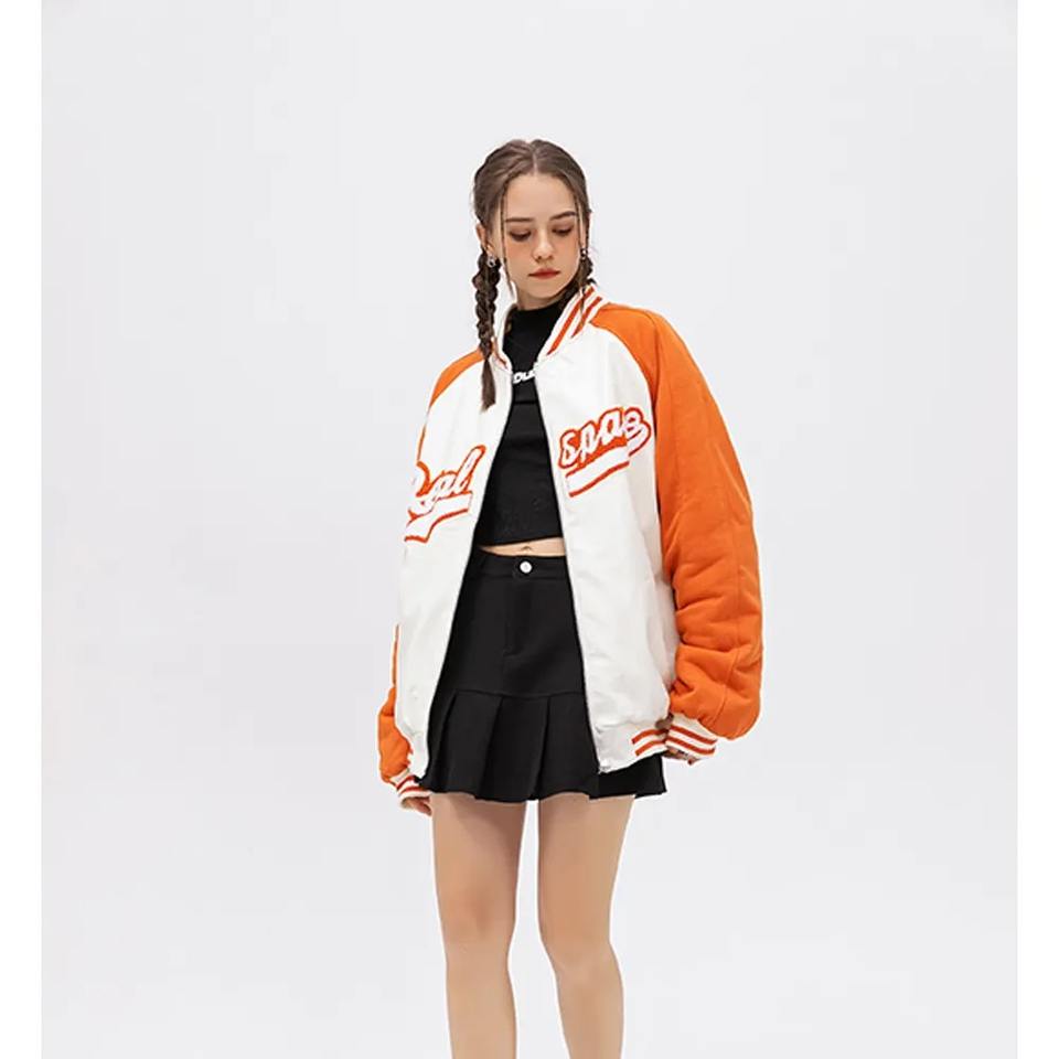 Diseño personalizado de alta calidad y logotipo bordado cuello redondo diseño de cuello de punto largo cierre frontal manga larga chaqueta de béisbol