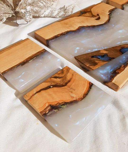 Posavasos decorativos de resina epoxi cuadrada hecha a mano de alta calidad y resina de madera verde mar para regalos de obsequios