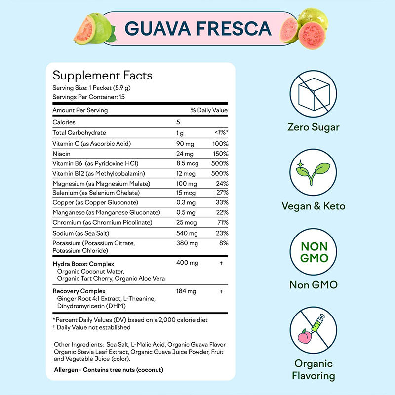 Vitamina de electrolitos de alta calidad, polvo de Hidratación Diaria, suplemento natural, aumento de energía y polvo de electrolitos de enfoque