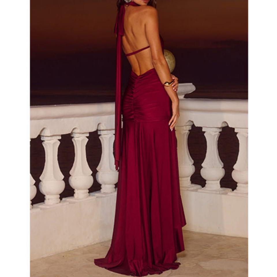 Vestido Maxi Elegante de Satén con Volantes y Abertura Alta para Mujer, Vestido Largo de Noche de Alta Calidad