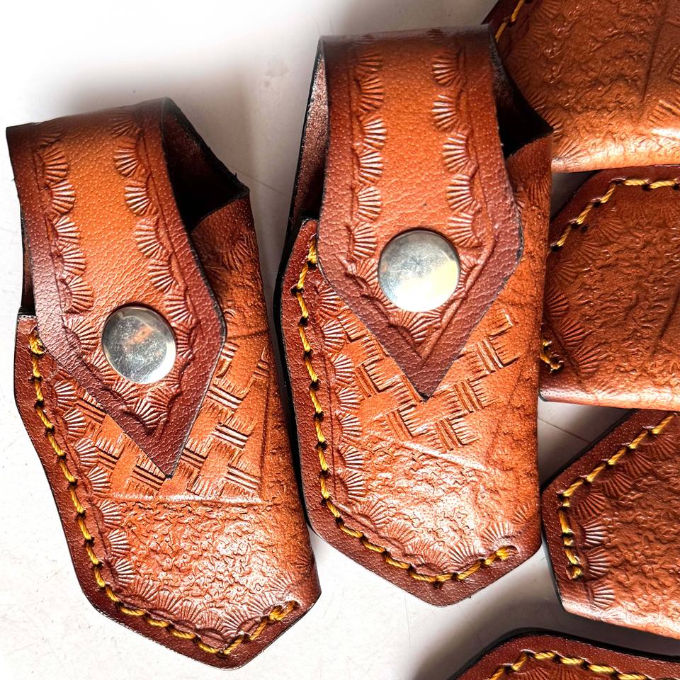 Funda de cuero de artesanía fina estampada a mano hecha en fábrica de alta calidad para cuchillos de hoja plegable de 4-5 pulgadas