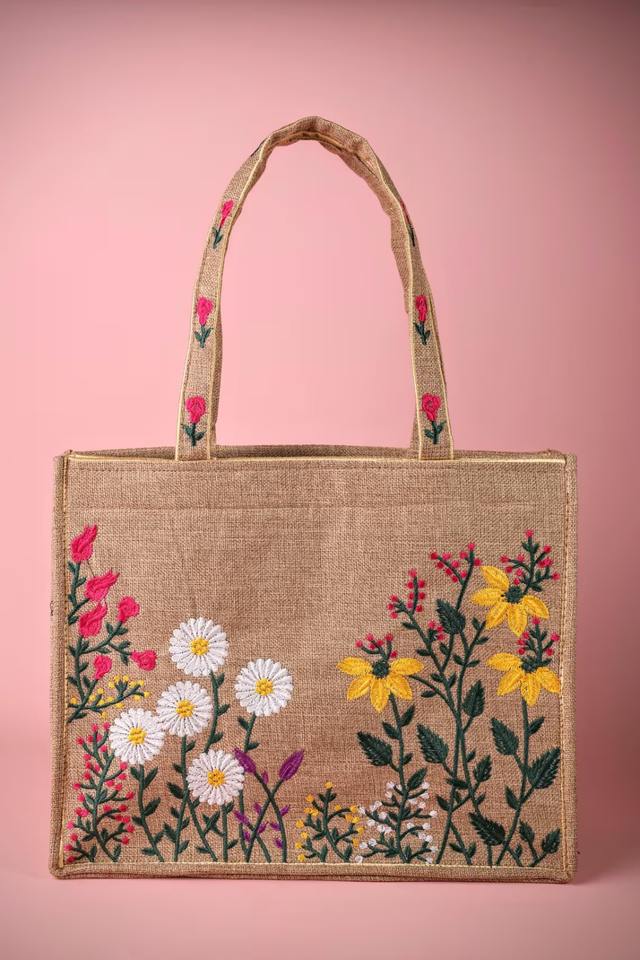 Bolsa de Yute con Patrón Geométrico de Alta Calidad, Bolsa Reutilizable para Clientes de Librerías y Papelerías a Buen Precio