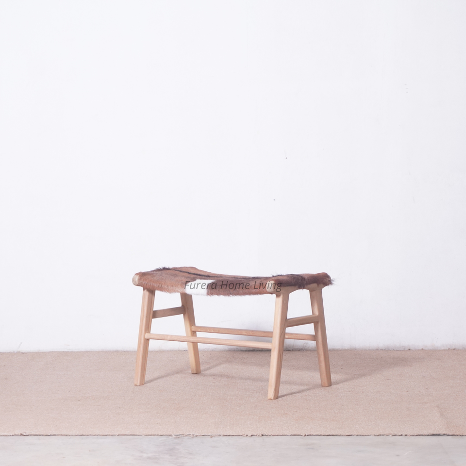 Reposapiés de cuero de cabra de alta calidad, marco de madera de teca maciza para salón Exterior, muebles de hotel o apartamento