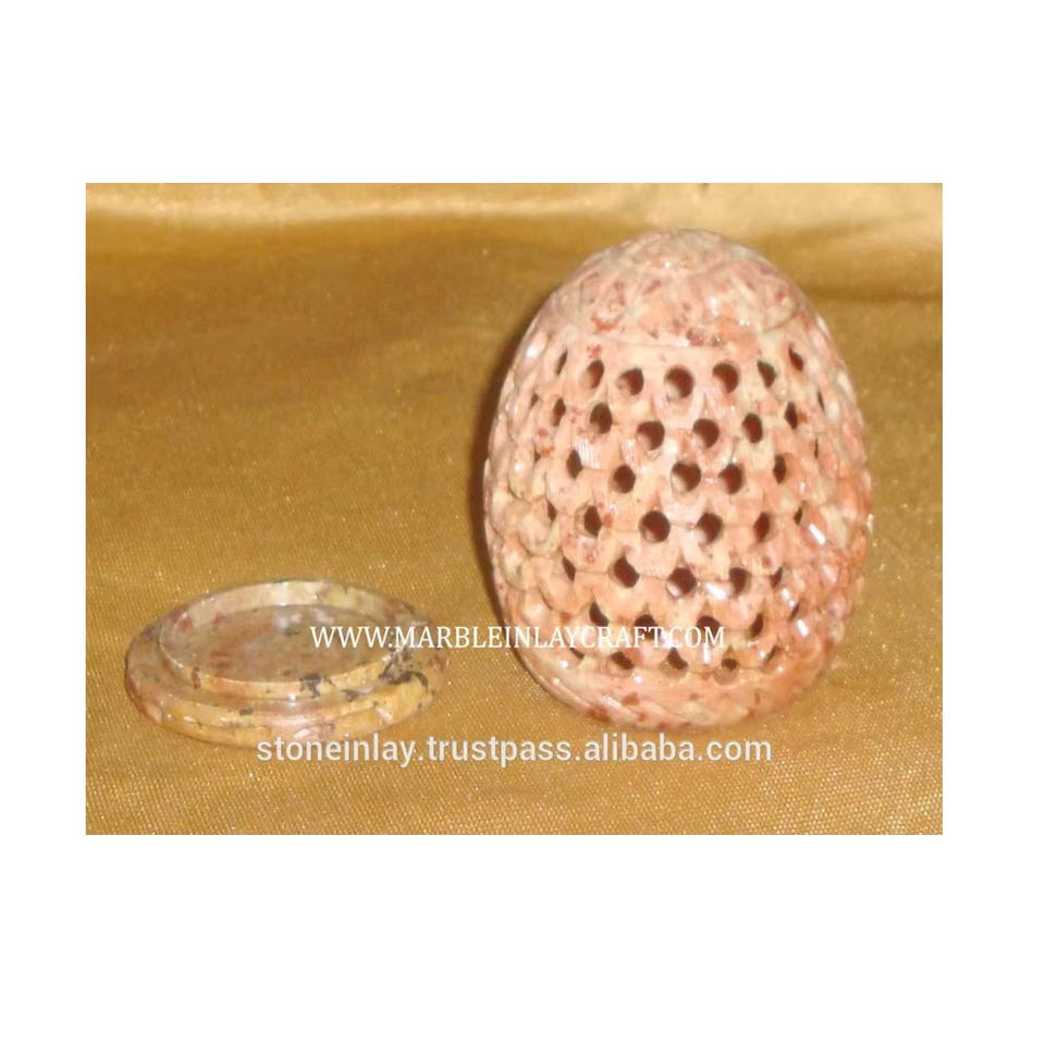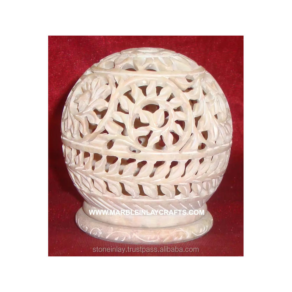 Portavelas Ovalado de Piedra Jabonosa Natural Hecho a Mano con Tallado Jali de Alta Calidad para Decoración del Hogar