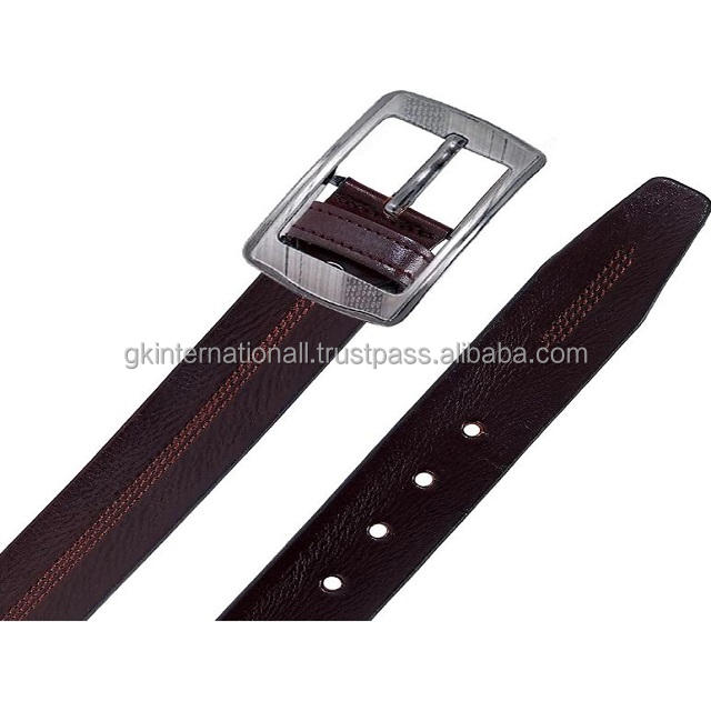Op uality ality-cinturón informal marrón de cuero texturizado hecho a mano para hombres, con costuras elegantes y hebilla de H niquelada extraíble