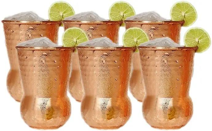 Vaso de Cobre Puro Auténtico, Desechable, Ecológico, de Alta Calidad, con Fondo Redondo y Martillado, para Agua