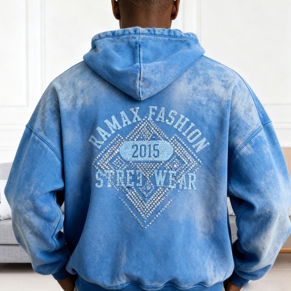 Sudadera con Capucha de Alta Calidad para Hombre, 100% Algodón, con Pedrería, Estilo Vintage, Oversize, Streetwear, Proceso Mixto