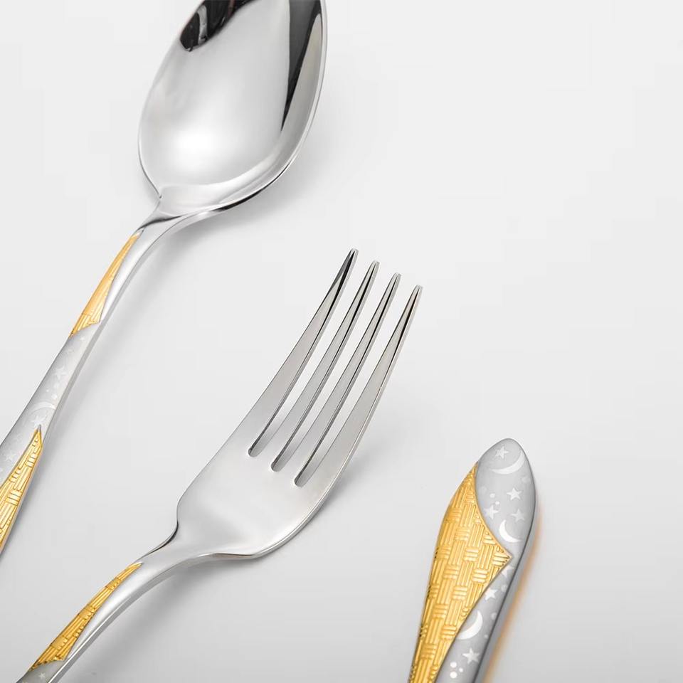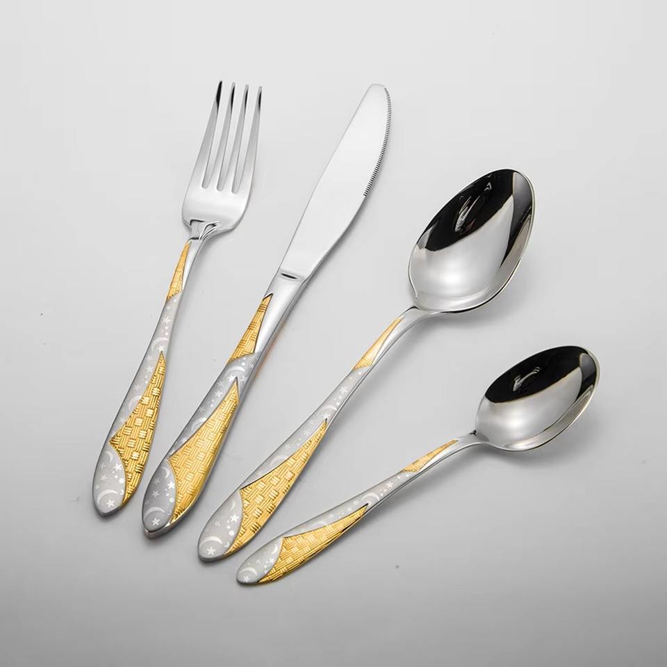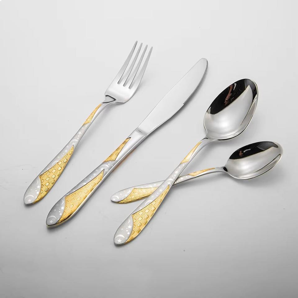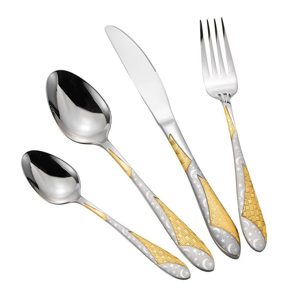 Juego de cubiertos con patrón dorado de estrella de personalización de alta calidad, cubiertos dorados de acero inoxidable para el hogar