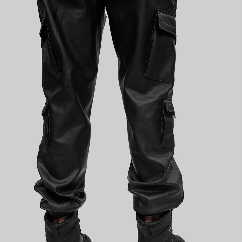 Pantalones de chándal de cuero de imitación de peso ligero de alta calidad para hombre