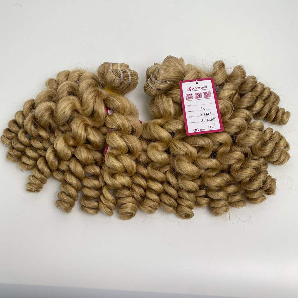Máquina de alta calidad Weft Mix Color 6C y 613 Remy Hair 24 pulgadas Body Wave 100% Remy Top en extensión de cabello
