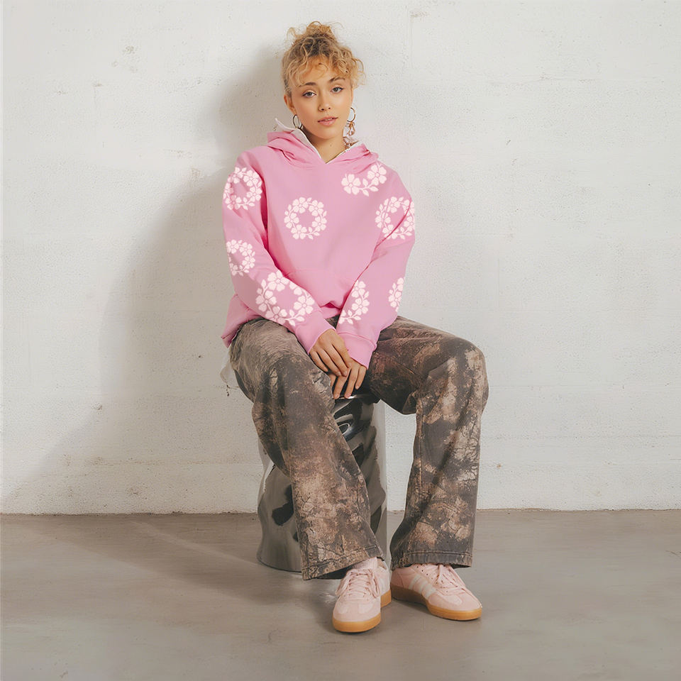 Sudadera de diseñador con capucha de flores con estampado de algodón Puff de alta calidad para hombre, conjunto de chándal de estilo callejero americano de moda Unisex