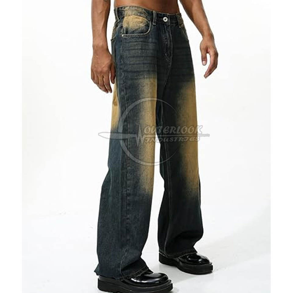 Pantalones de hombre de precio bajo de alta calidad, pantalones vaqueros de pierna ancha con logotipo de impresión personalizada para hombre, pantalones Losse Fit