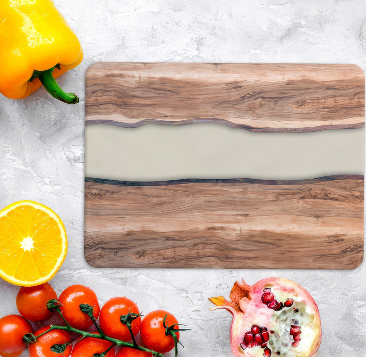 Juego de tabla de cortar de madera de acacia gruesa y resistente con ranura para jugo para cocina, comedor, tablas para cortar y servir