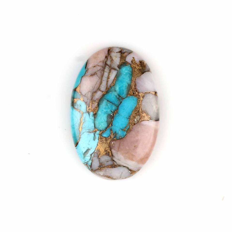 Cabujón Ovalado de Piedra Preciosa de Turquesa de Cobre y Ópalo Rosa Natural