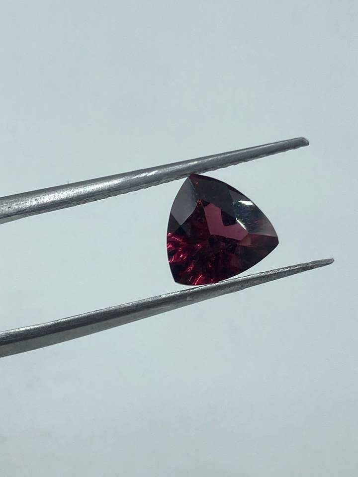 Piedra de granate rohdolita natural de alta calidad, corte triangular, 1.76 quilates, para la fabricación de joyas.