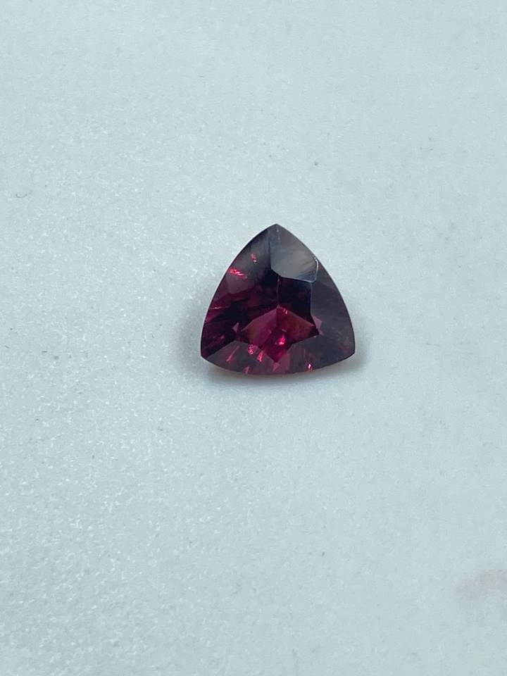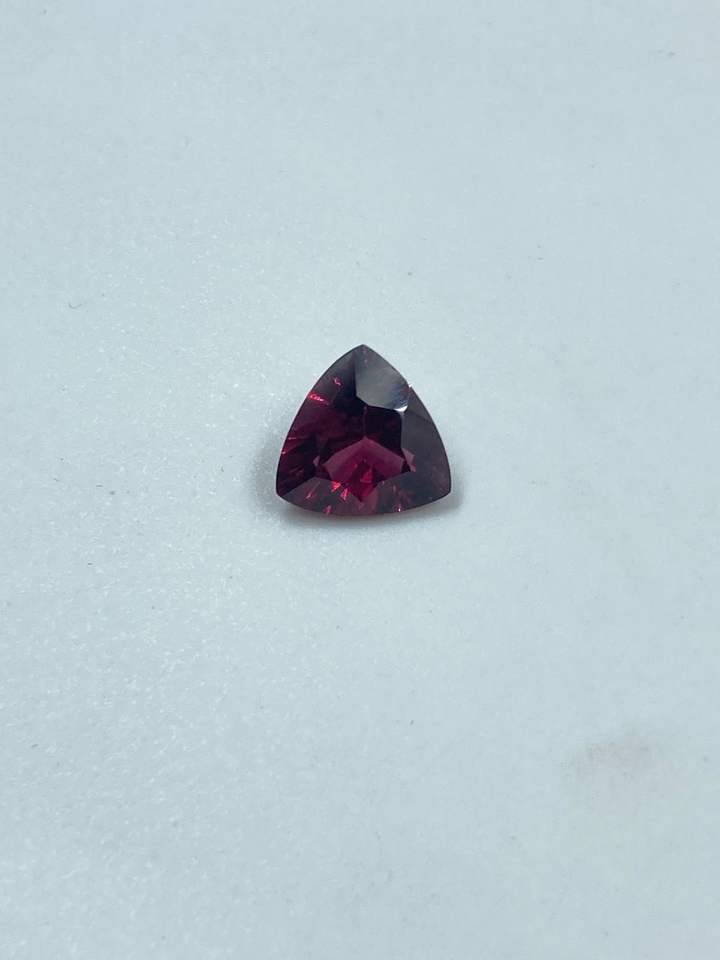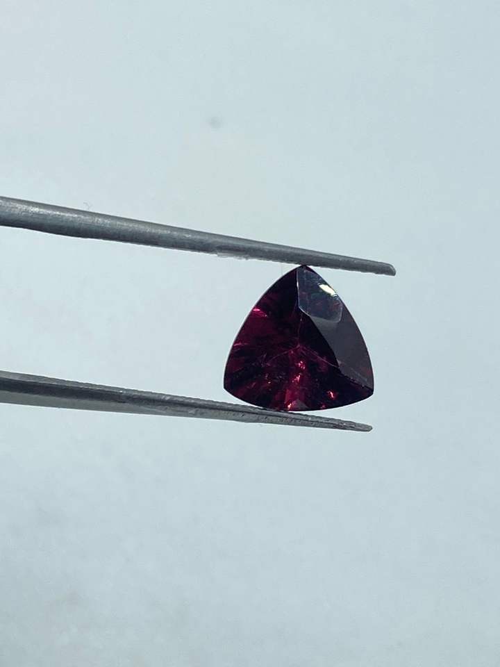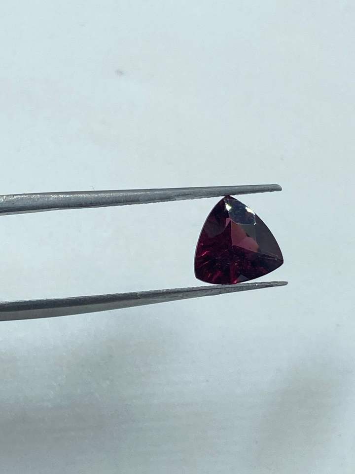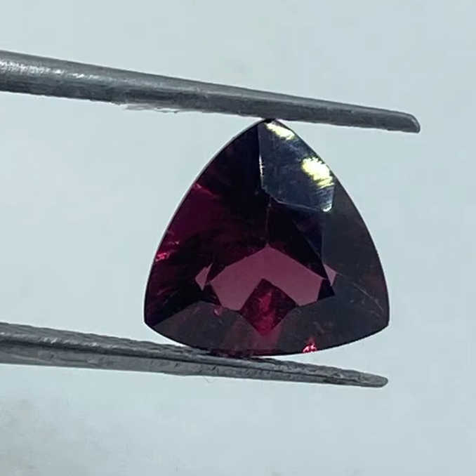 Piedra de granate rohdolita natural de alta calidad, gema suelta con corte triangular de 2.17 quilates para la fabricación de joyas.