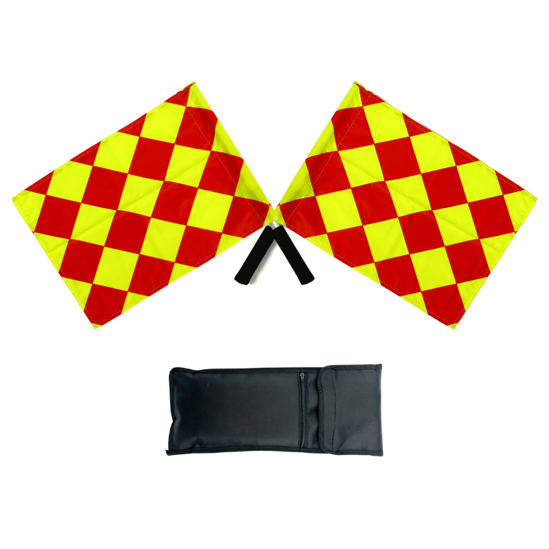 Alta calidad neón amarillo y rojo girado telescópico árbitro de fútbol banderas equipo de corte