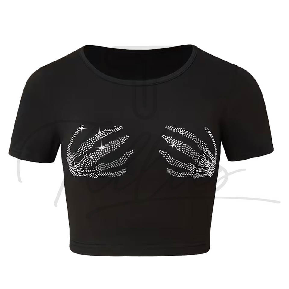 Top Corto de Mujer con Pedrería, Nuevo, Elegante, Transpirable, Diseño Único, Venta al Por Mayor, para Venta en Línea