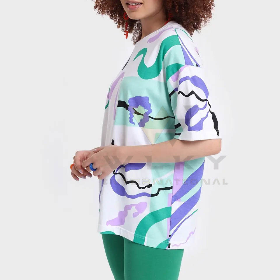 Camisetas de mujer de gran tamaño de alta calidad hechas en Pakistán, logotipo personalizado, cuello redondo, secado rápido, ajuste holgado para el verano