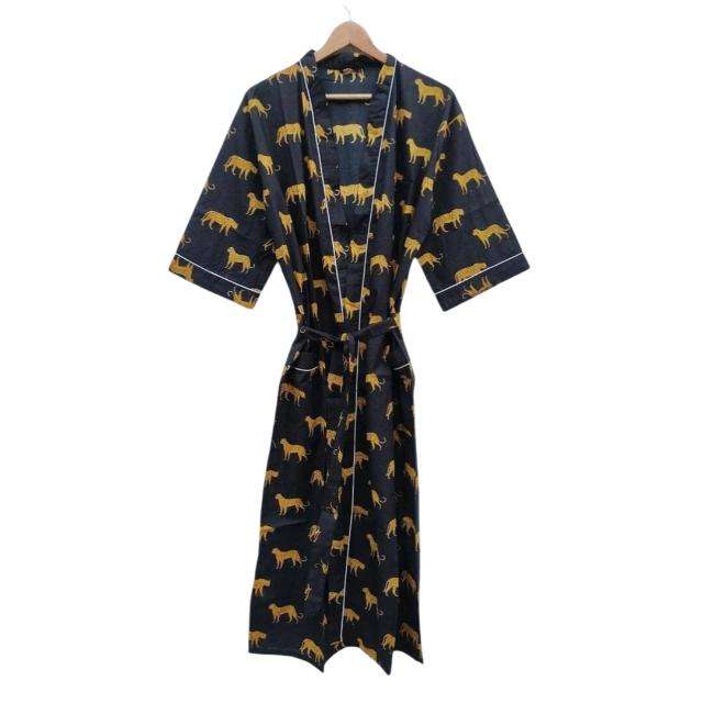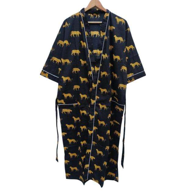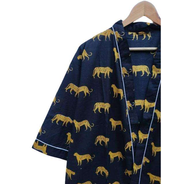 Kimono de Algodón Suave Azul de Talla Grande de Alta Calidad, Ropa de Estar con Estampado Floral Hecho a Mano, Disponible a Precio de Mayoreo