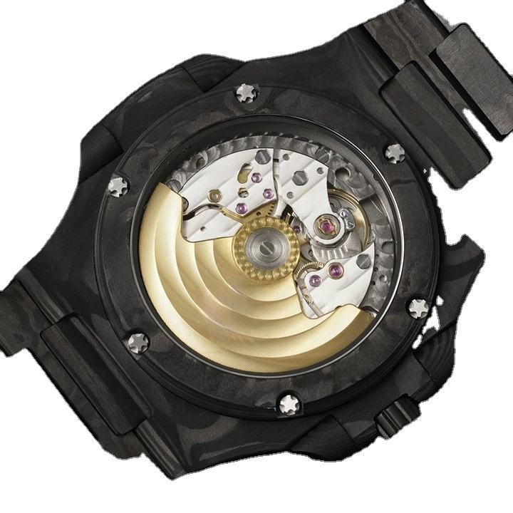 Reloj de Pulsera de Lujo para Hombre de Primera Calidad con Esfera Azul Degradada, Fibra de Carbono, Patrón Damasco, Fecha Automática, Resistente al Agua