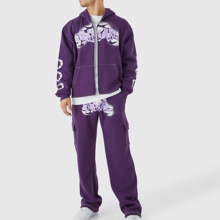 Chándal de Alta Calidad con Estampado Puff, Felpa de Algodón Grueso, Pantalones Anchos de Pierna Ancha con Cremallera, Chándal para Hombre, Precios al por Mayor