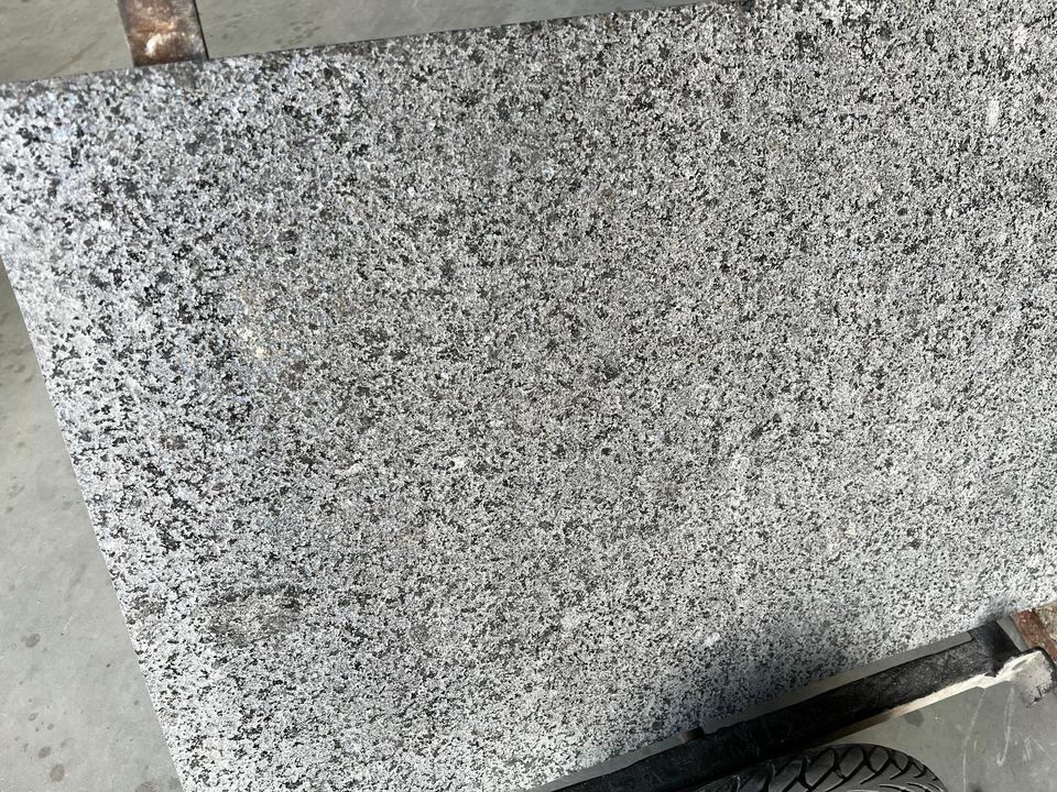 Losa de granito flameado pulido R de alta calidad con puntos negros y azules para un diseño moderno para paredes de chimenea internas y externas