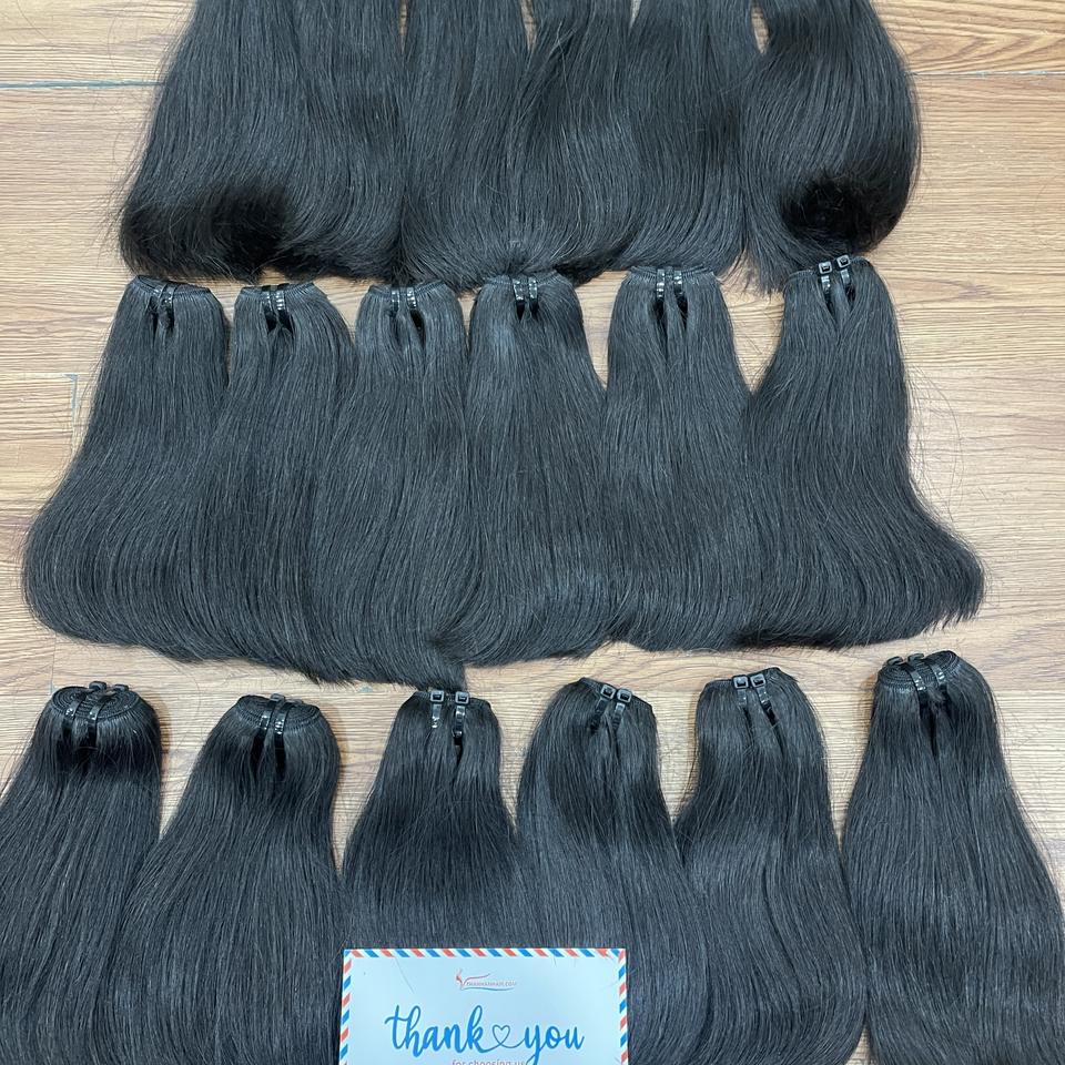 Extensiones de Cabello Humano Virgen Liso de Máquina de Alta Calidad, Color Negro Natural, Cutícula Alineada, Listas para Enviar