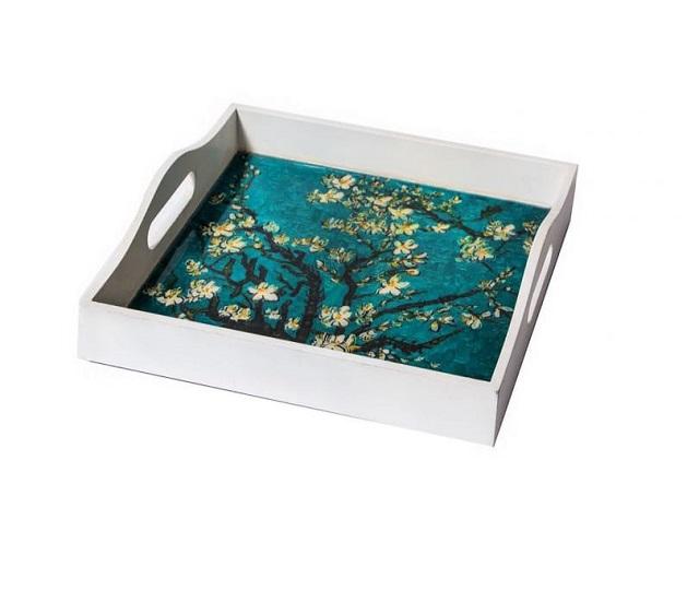 Bandeja de servicio de laca MDF rectangular de alta calidad con elegante diseño de flores para restaurantes de lujo, hoteles y cafeterías