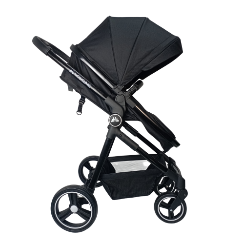 Cochecito de bebé español de alta calidad 2 en 1 cochecito plegable ultracompacto mango de una sola palanca arnés de 5 puntos barra extraíble negro