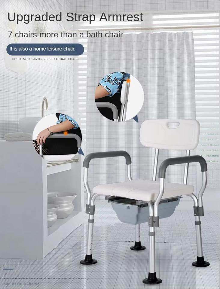Silla de baño española de alta calidad en aluminio con altura ajustable y respaldo lista para exportar