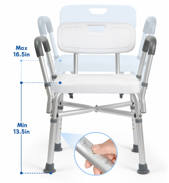 Silla de baño española de alta calidad en aluminio con altura y respaldo regulables Listo para exportar
