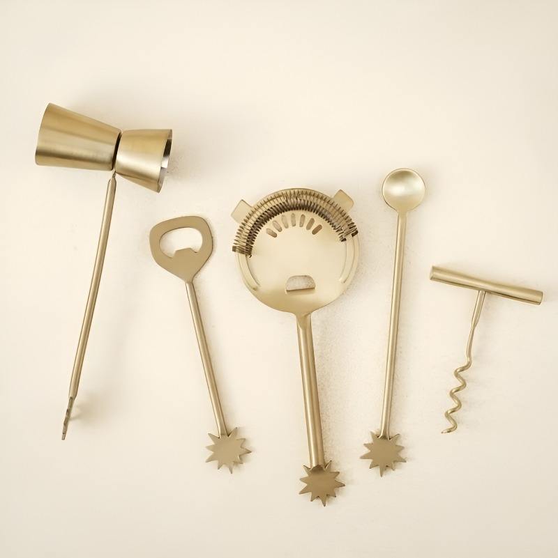 Juego de Herramientas de Bar de Acero Inoxidable de Alta Calidad, 5 Piezas, para Hogar y Restaurante, Diseño Único, con Mango de Resina, Venta al Por Mayor