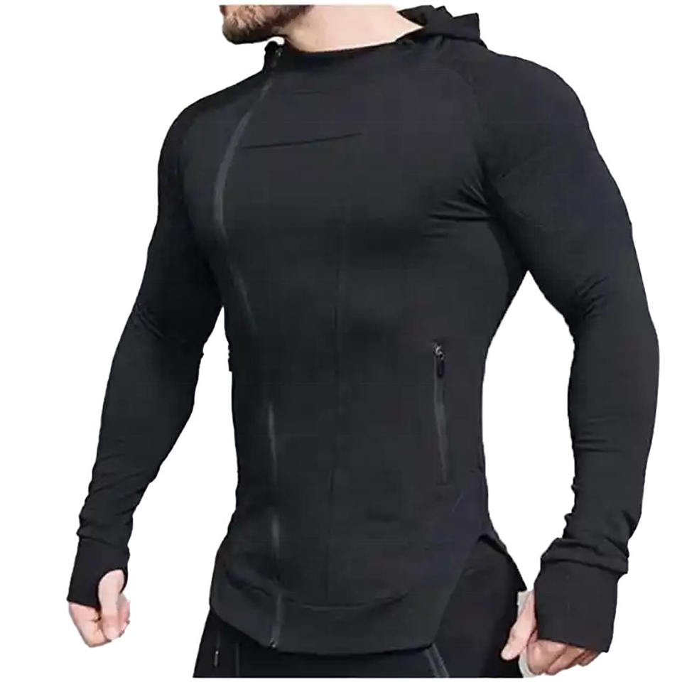 Chándal de gimnasio de entrenamiento de alta calidad, chándal transpirable liso deportivo ajustado con cremallera para hombre, chándal de jogging de algodón 100% para hombre