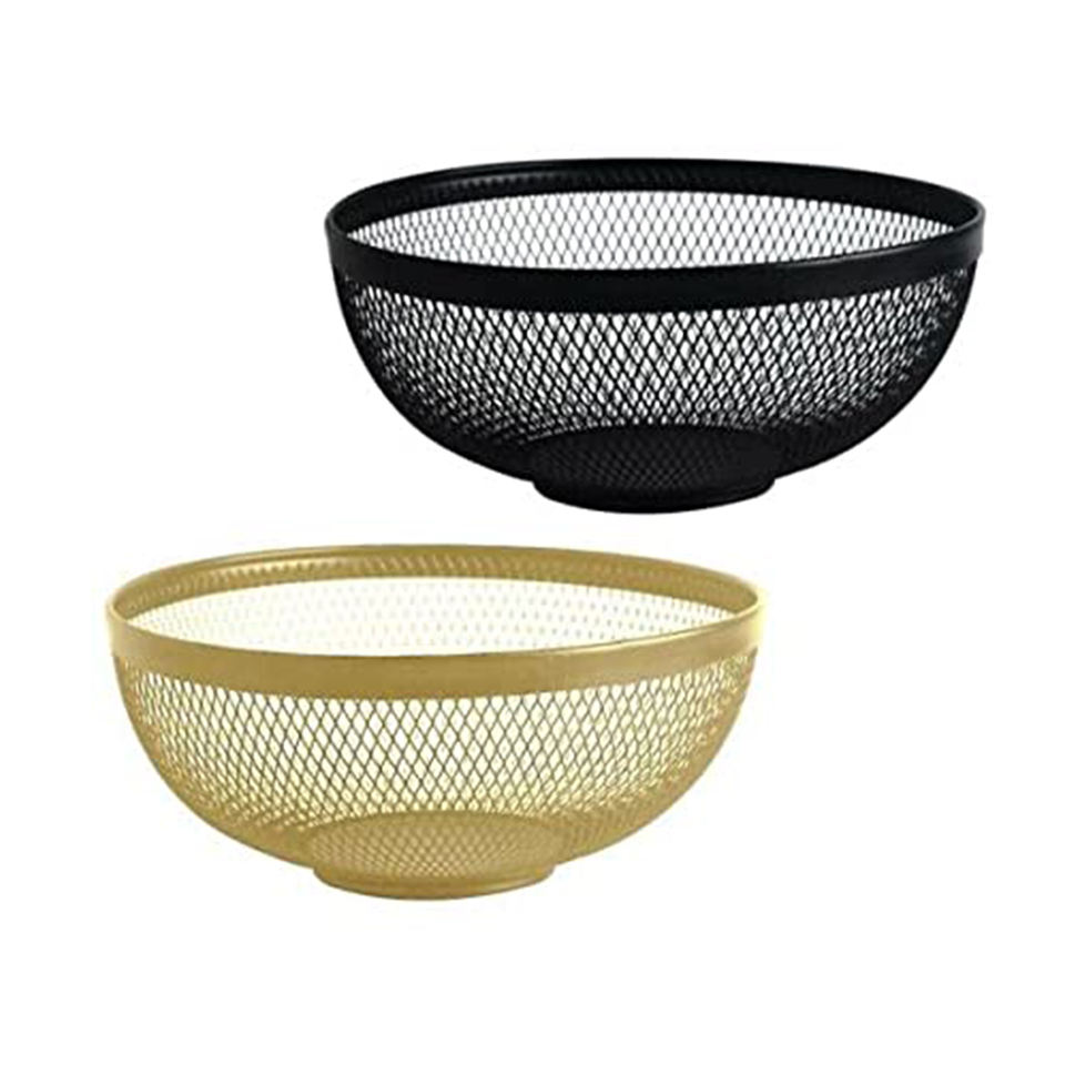 Cesta de fruta con diseño de Metal de alambre de alta calidad, acabado negro y dorado, mesa de comedor, encimera de cocina, cesta de fruta decorativa