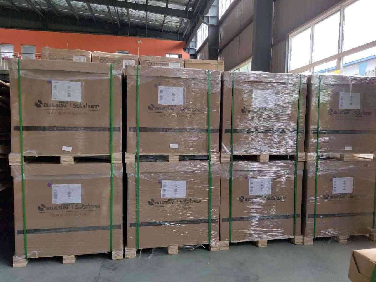 Panel solar PERC bifacial de 440W en cartón con palé o según necesidad del cliente