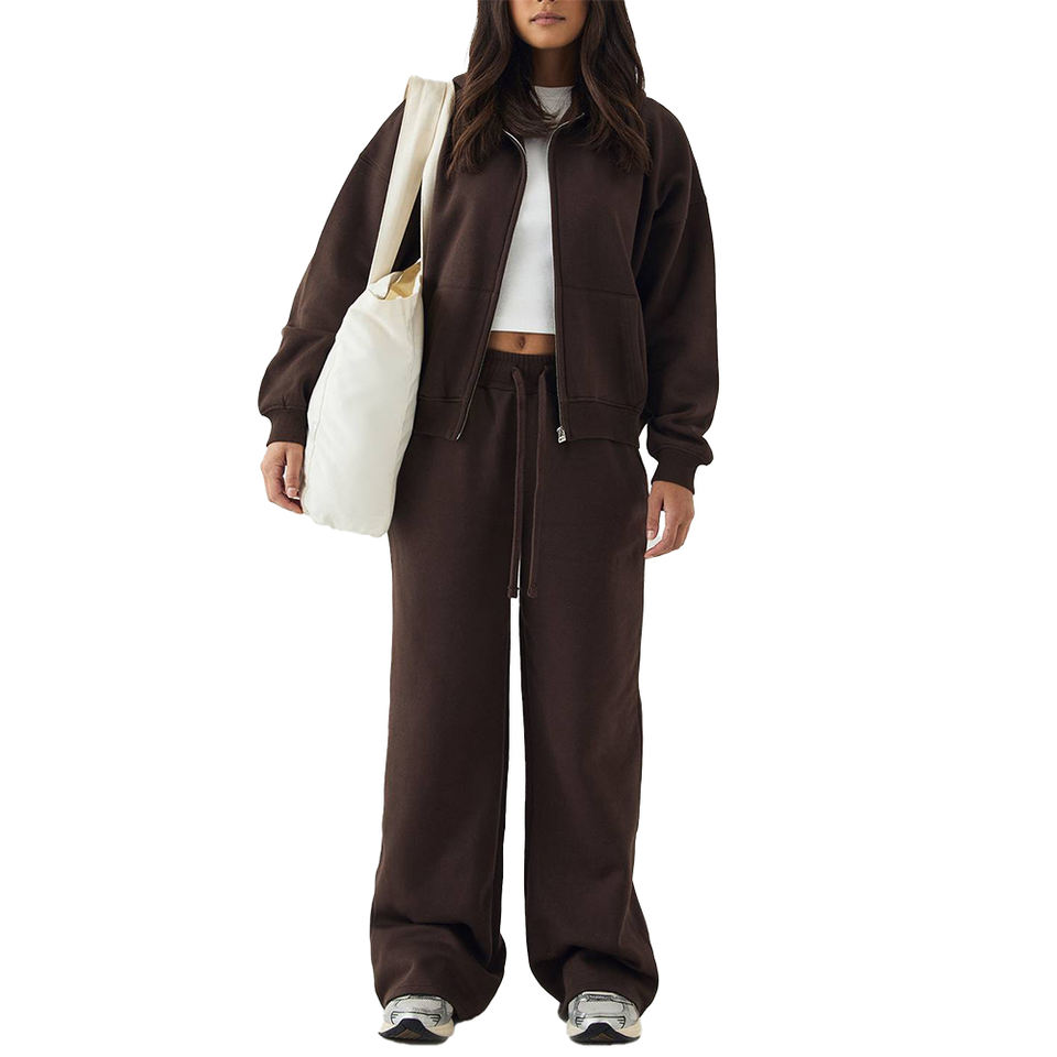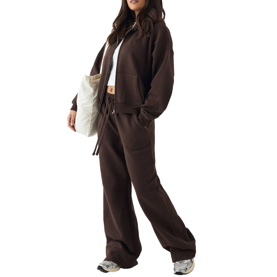Sudadera con Capucha de Alta Calidad para Mujer, Color Marrón Sólido, Lavado Ácido, Cierre Frontal Completo, Logotipo Personalizado, Diseño Propio, Invierno, Bordado 3D Impreso