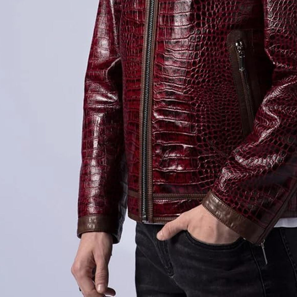 Chaqueta de Invierno Unisex de Primera Calidad, Elegante, con Relieve, 100% Cuero Genuino, Cierre de Cremallera, Transpirable, con Cuello Alto, Nueva Colección
