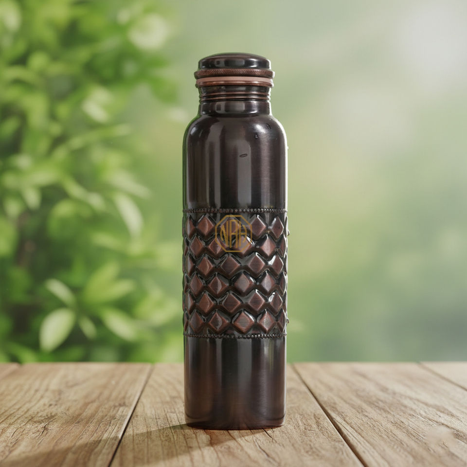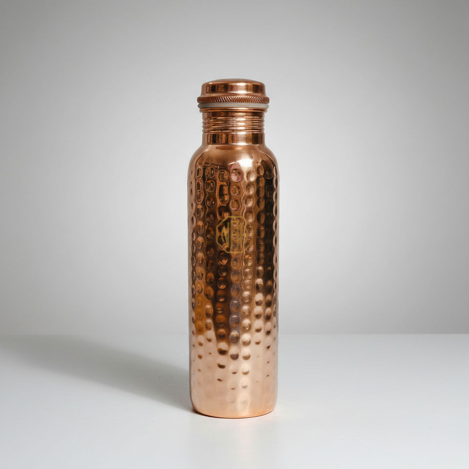 Botella de Agua de Cobre Puro Hecha a Mano de 750 ml de Primera Calidad | Diseño a prueba de fugas para beber directamente con logotipo personalizado, ecológico, adecuado