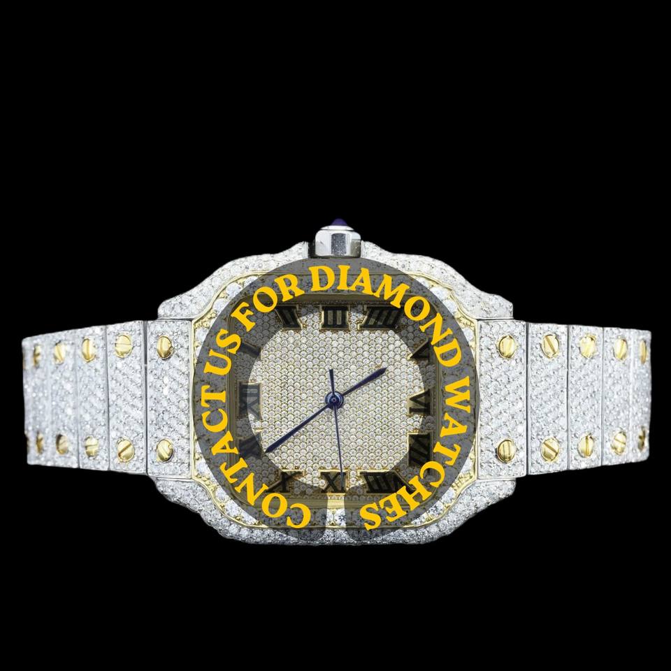 Reloj de Pulsera Clásico de Hip Hop para Hombre, con Caja Cuadrada Elegante, Esfera con Números Romanos, Cristal de Cuarzo, Completamente Adornado con Diamantes Moissanite