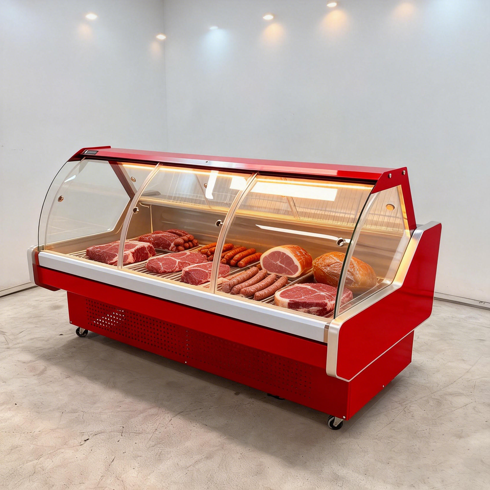 Vitrina Refrigerada de Enfriamiento Estático de Primera Calidad, Refrigerador de Exhibición de Carne con Vidrio Curvo, Refrigerador Comercial para Alimentos Cocinados para Tiendas de Abarrotes