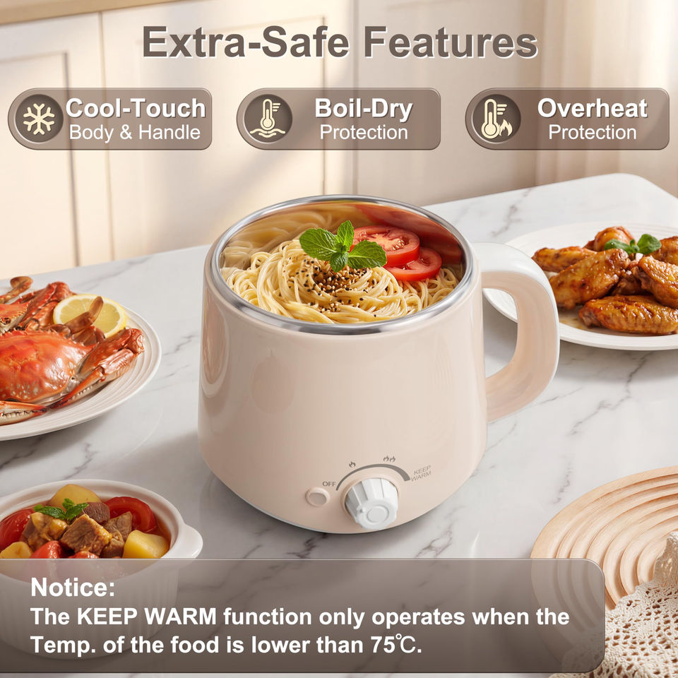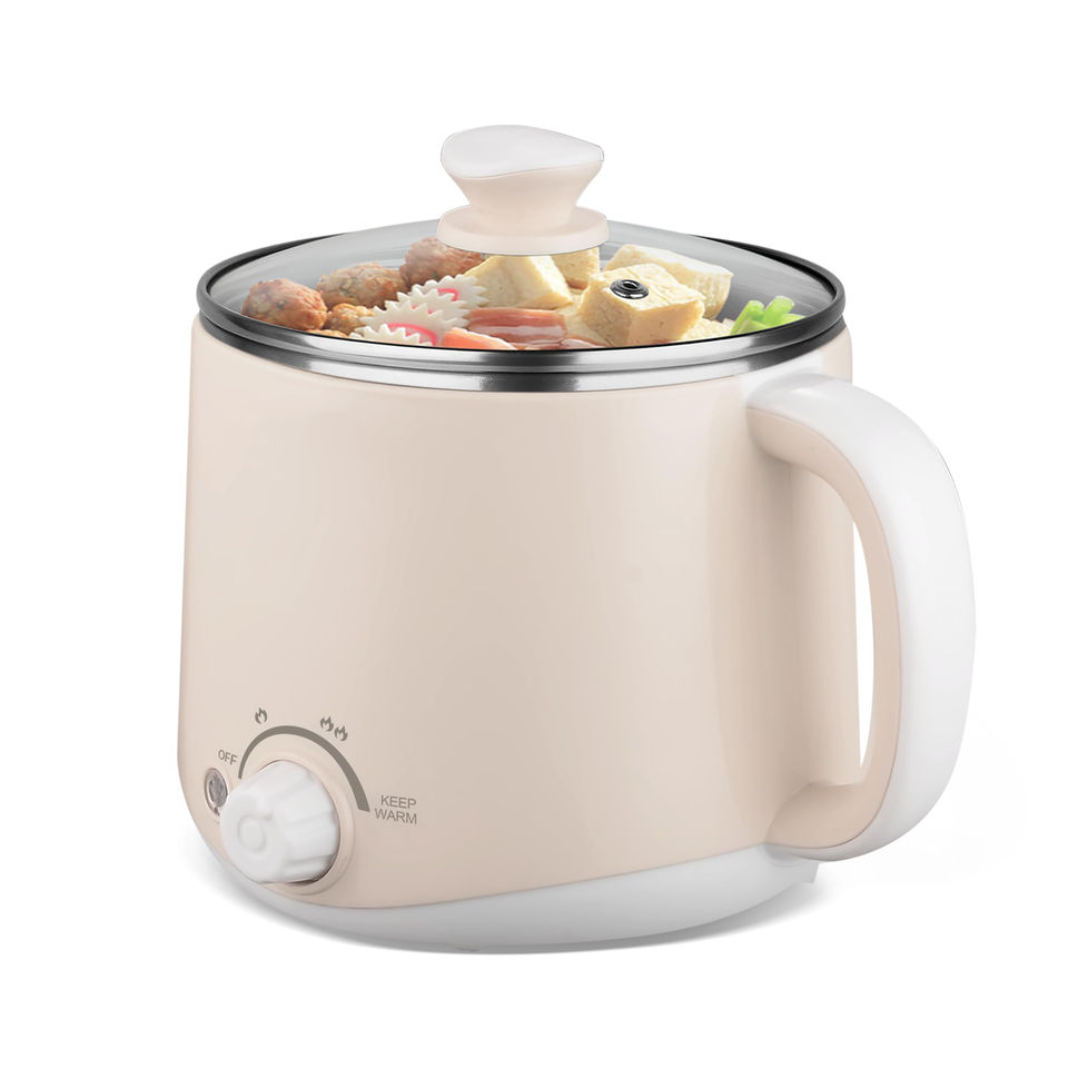Olla eléctrica multifunción de 1.6L con tapa de vidrio y cocedor de huevos eléctrico, ¡la más vendida!
