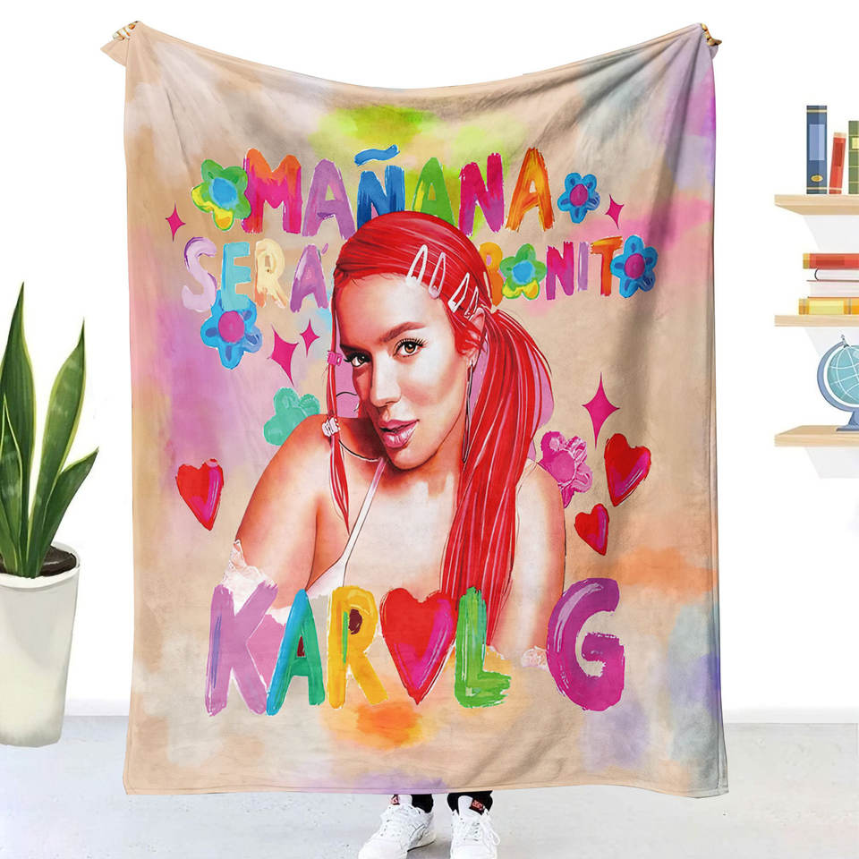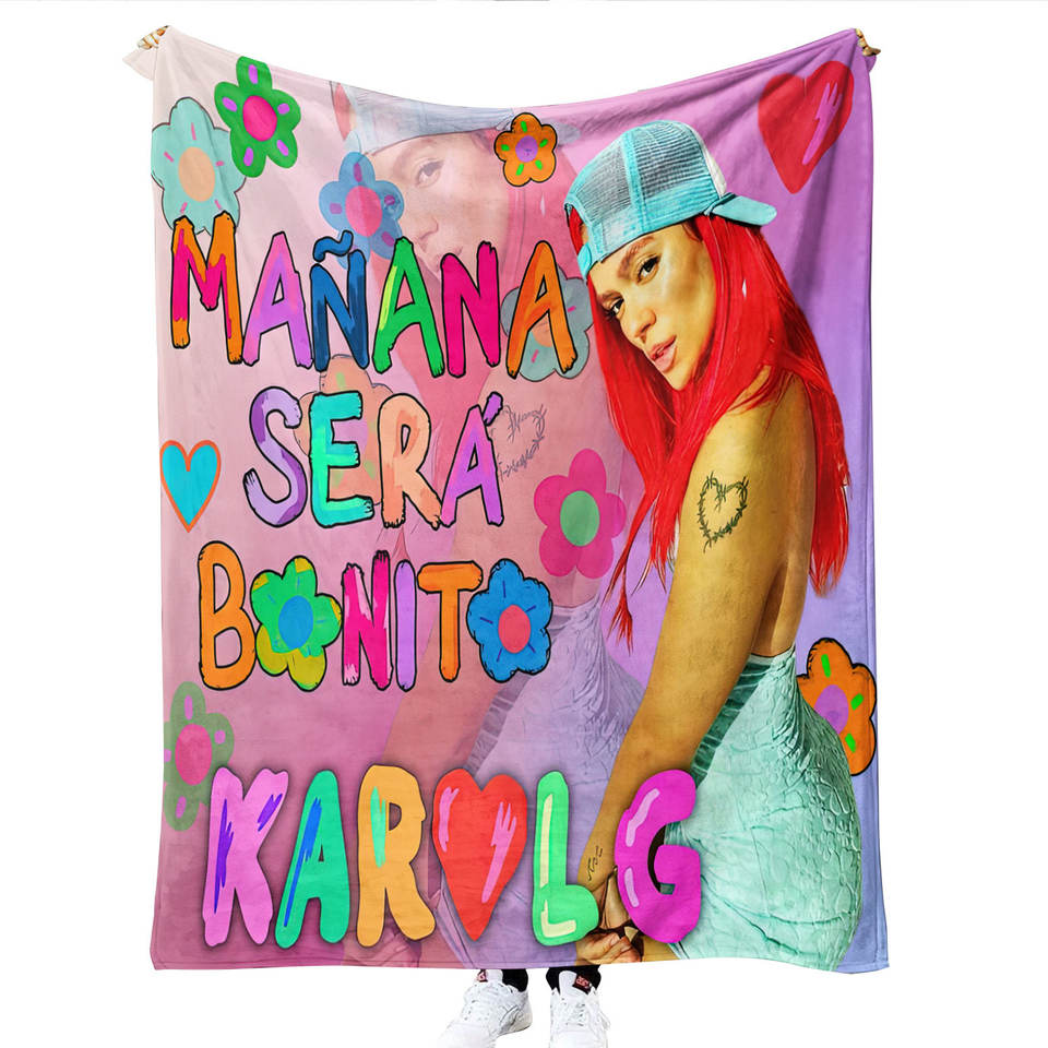 Venta superior Dibujos animados Impreso Popular Cantante Karol G Fans Mantas Manana Sera Bonito Manta de felpa