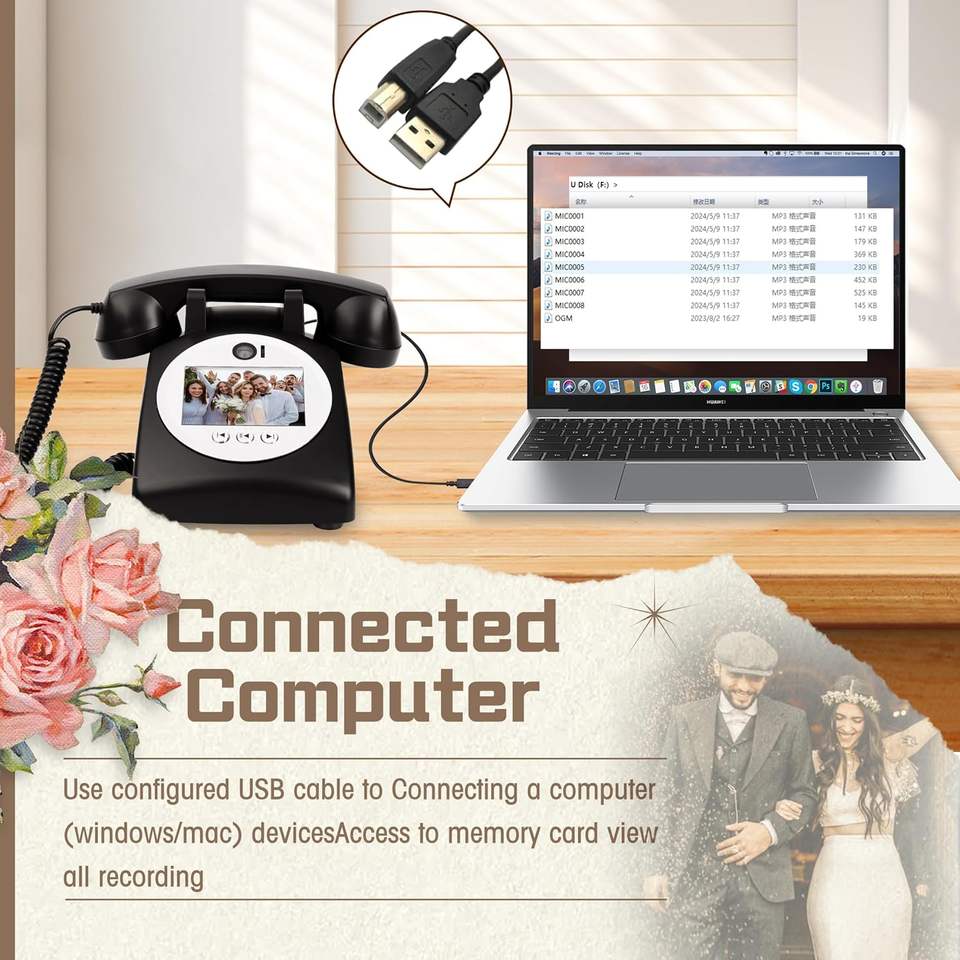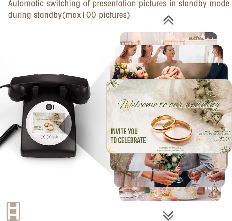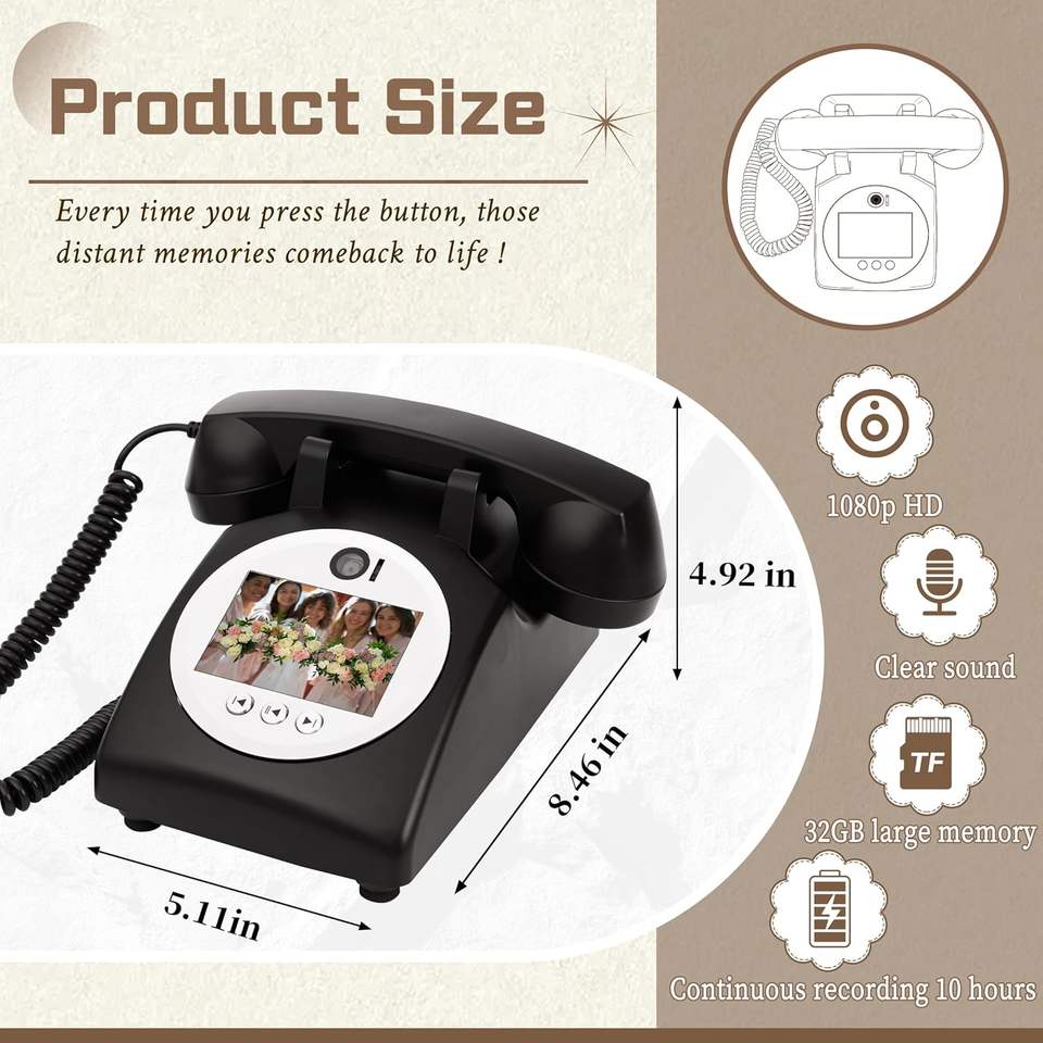 Venta superior claro recargable Video rotatorio Audio mensaje libro con cable teléfonos para amigos grabación Vintage Cámara parodia antigua