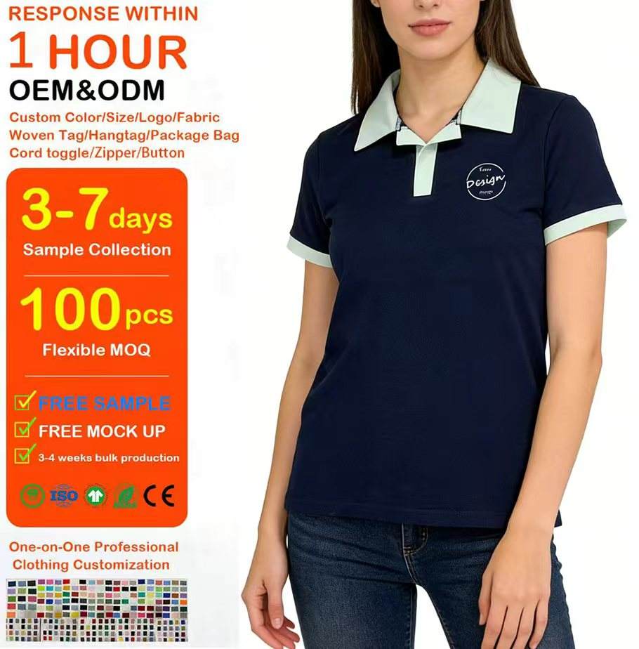Polo Deportivo Casual para Mujer, 100% Algodón, con Logotipo Personalizado Serigrafiado, Cuello Camisero, Polo con Ribete en Contraste