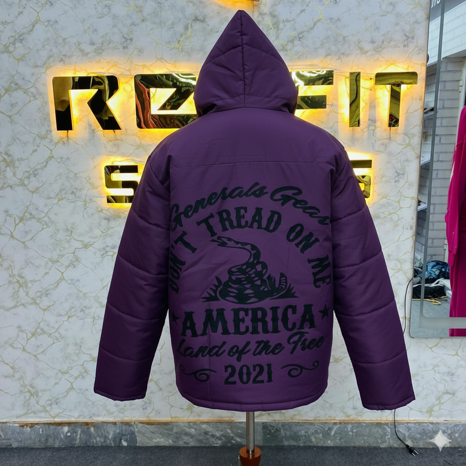 Venta superior Buen material Diseño popular hombres Chaqueta acolchada púrpura Chaquetas de nylon de poliéster para hombres High Street Chaquetas acolchadas para hombres
