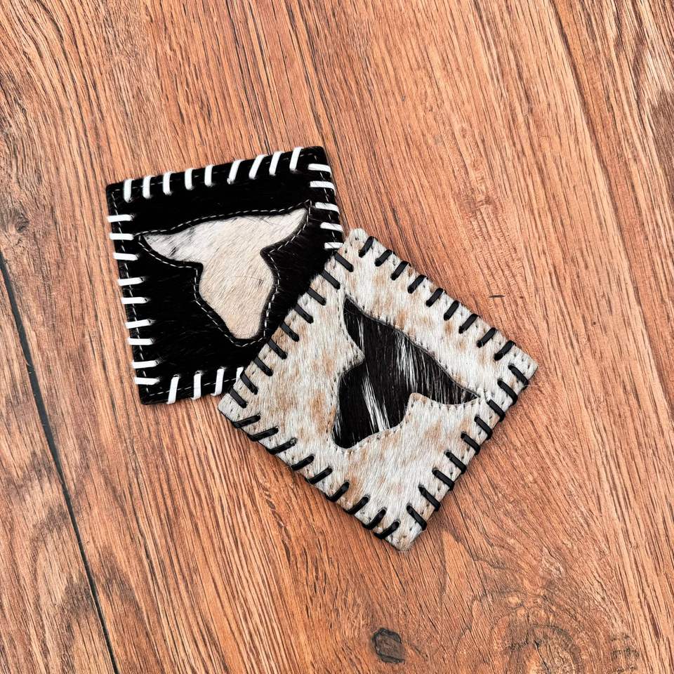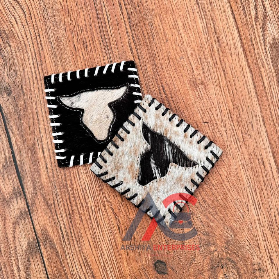 Venta superior hecho a mano Longhorn Cowhide Posavasos Set Western Hair On Hide Posavasos de cuero genuino para bebidas Western Home Decor Gifts
