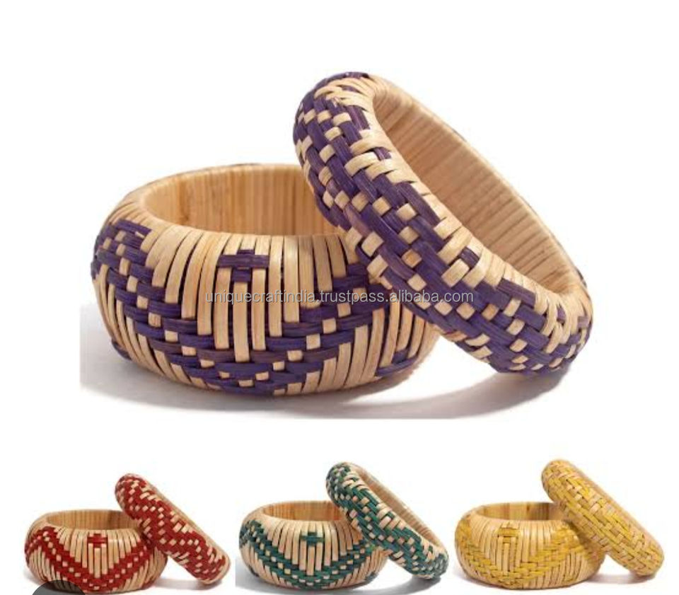 Brazalete de ratán minimalista de gran oferta, pulseras de mimbre de paja tejida, brazaletes de ratán grueso marrón a la moda para mujer a buen precio