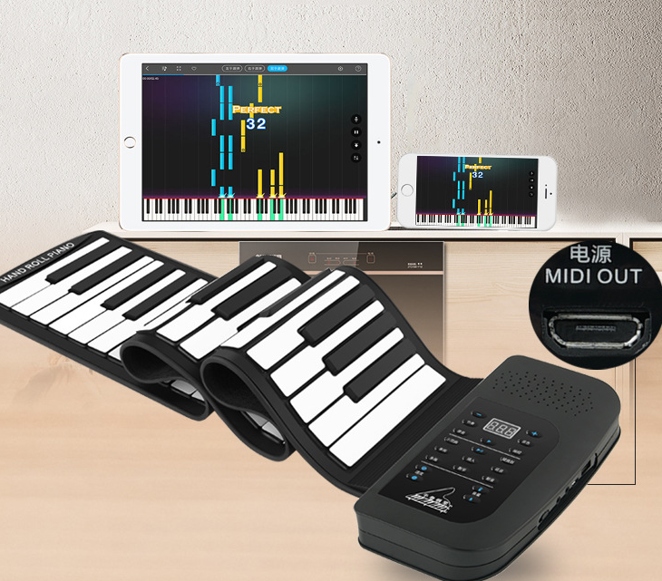 Venta superior modelo portátil espesar teclado MIDI electrónico 61 teclas enrollar piano para estudiantes adultos con trompeta