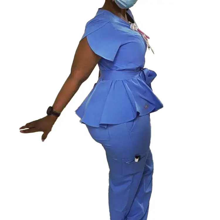 Venta superior Enfermeras Uniformes de hospital Dos piezas Estiramiento Spandex Pantalones Scrubs Traje Enfermería Jogger Mujeres Scrubs Uniformes Conjuntos